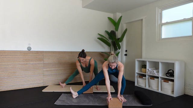 Certified Prenatal Yoga Instructor Ashley Stewart is taking us through a yoga flow focused on opening the hips & stretching the side body for birth prep.